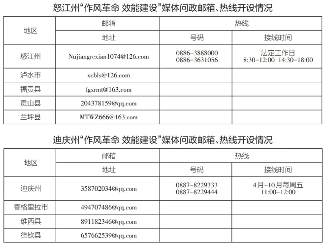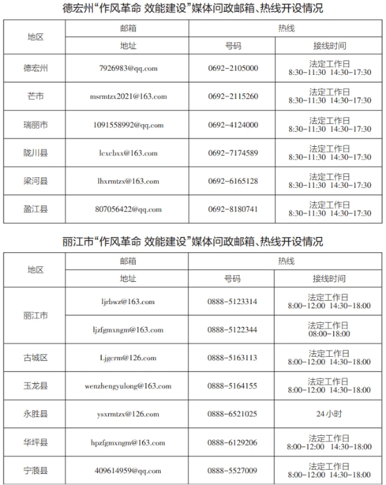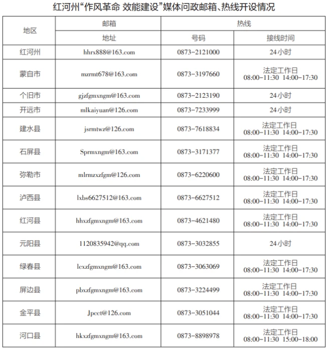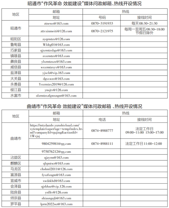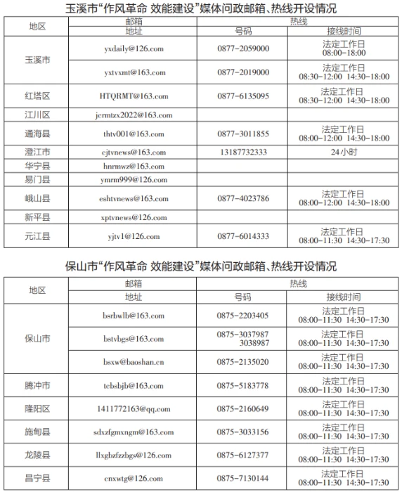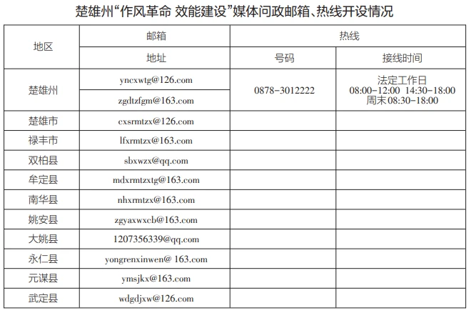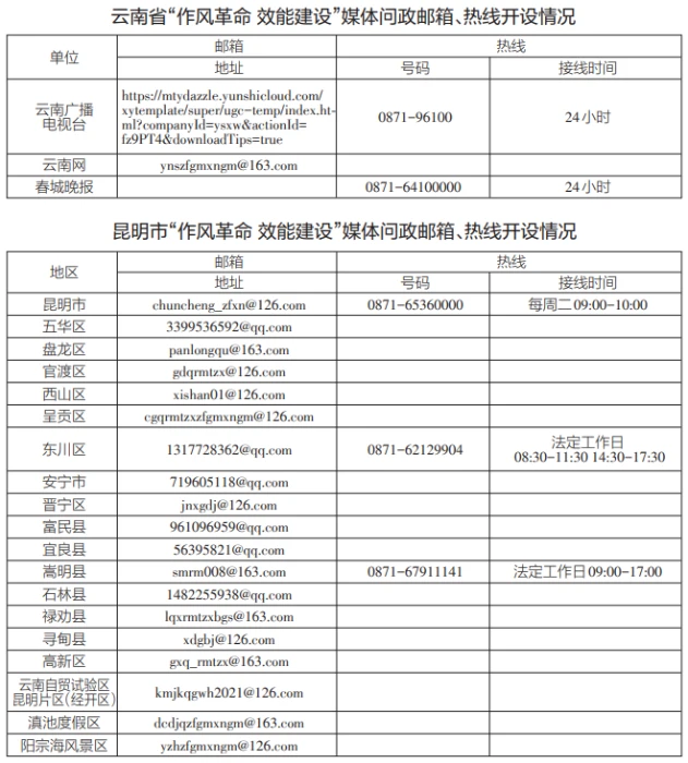 為深入貫徹落實《云南省推進作風革命加強機關效能建設的若干規(guī)定(試行)》,即日起,我省將全面開展“作風革命 效能建設”媒體問政工作。全省各級媒體將面向社會公眾開設“作風革命 效能建設”問政專區(qū),采用電子郵箱、廣播電視專題節(jié)目、熱線電話等多種形式暢通群眾、基層、企業(yè)訴求渠道,廣泛收集各類意見建議,開展輿論監(jiān)督。歡迎廣大群眾、各類企業(yè)就全省各地區(qū)各部門在轉變作風、提升效能,服務群眾、服務基層、服務企業(yè)過程中存在的不良現(xiàn)象、典型問題,積極提供相關新聞報道線索。各級媒體將及時把意見建議和問題線索反饋至有關部門,持續(xù)跟蹤問效,推進問題解決。