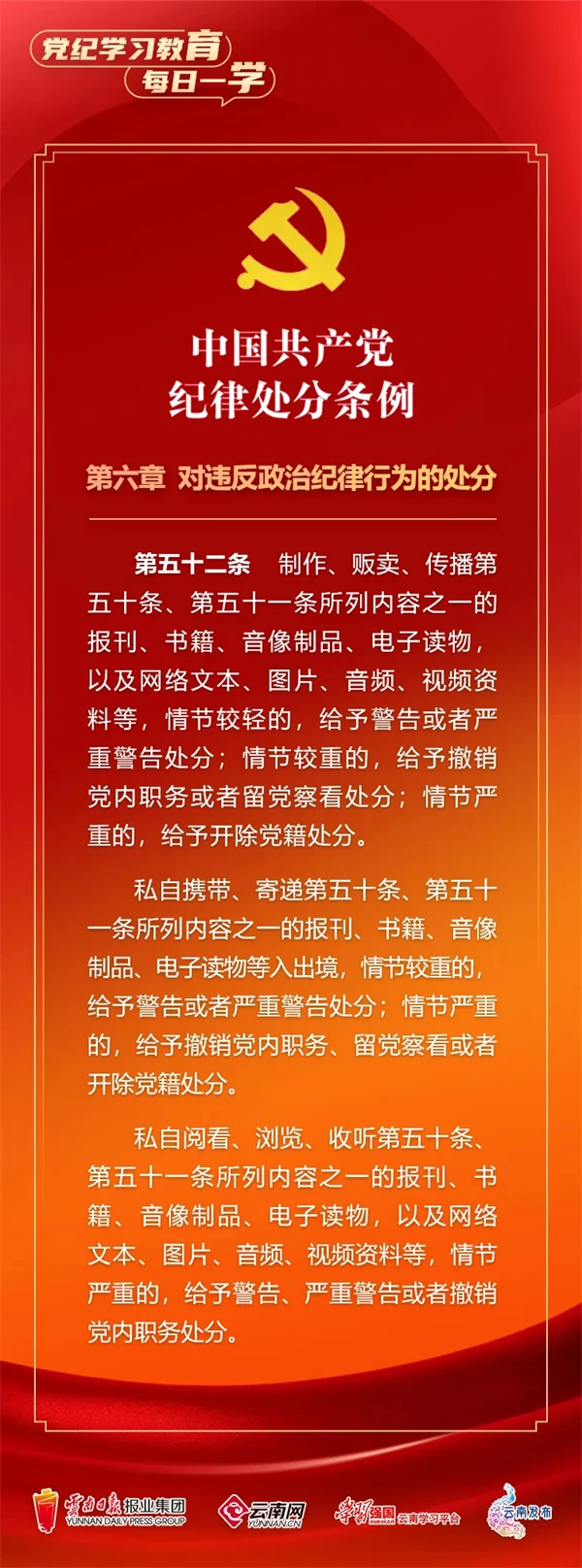 為深入學(xué)習(xí)貫徹落實習(xí)近平總書記關(guān)于黨紀(jì)學(xué)習(xí)教育的重要講話和重要指示精神,便于全省各級黨組織和廣大黨員、干部深入學(xué)習(xí)貫徹修訂后的《中國共產(chǎn)黨紀(jì)律處分條例》,云南網(wǎng)聯(lián)合“學(xué)習(xí)強國”云南學(xué)習(xí)平臺、云南發(fā)布共同策劃推出“黨紀(jì)學(xué)習(xí)教育•每日一學(xué)”專欄,營造全員參與、人人學(xué)紀(jì)的濃厚氛圍。今天,我們推出第?期,一起來學(xué)習(xí)。