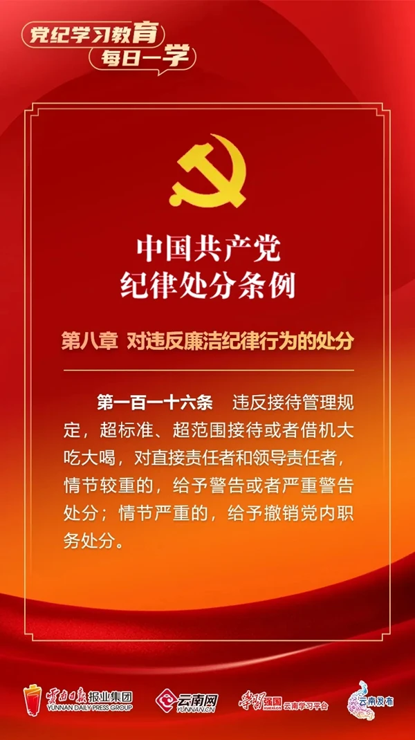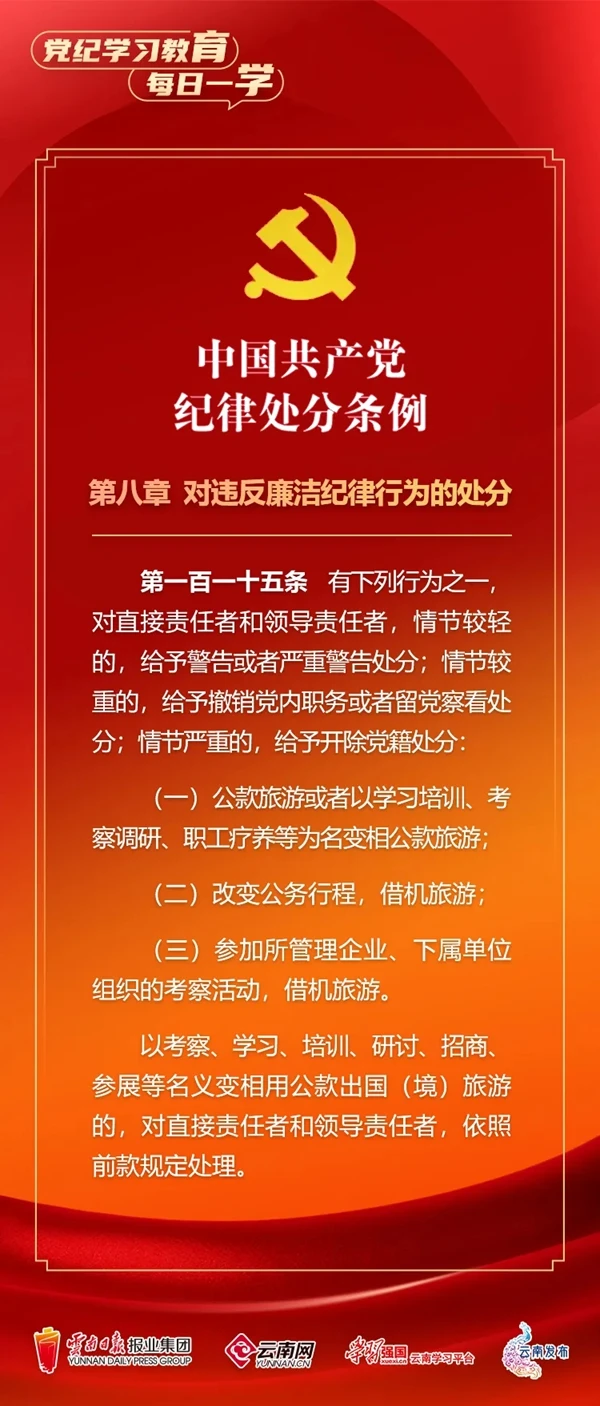 為深入學(xué)習(xí)貫徹落實(shí)習(xí)近平總書(shū)記關(guān)于黨紀(jì)學(xué)習(xí)教育的重要講話和重要指示精神,便于全省各級(jí)黨組織和廣大黨員、干部深入學(xué)習(xí)貫徹修訂后的《中國(guó)共產(chǎn)黨紀(jì)律處分條例》,云南網(wǎng)聯(lián)合“學(xué)習(xí)強(qiáng)國(guó)”云南學(xué)習(xí)平臺(tái)、云南發(fā)布共同策劃推出“黨紀(jì)學(xué)習(xí)教育•每日一學(xué)”專(zhuān)欄,營(yíng)造全員參與、人人學(xué)紀(jì)的濃厚氛圍。今天,我們推出第55期,一起來(lái)學(xué)習(xí)。