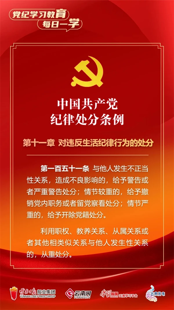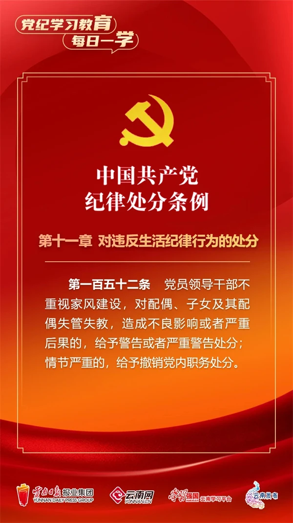 為深入學(xué)習(xí)貫徹落實(shí)習(xí)近平總書記關(guān)于黨紀(jì)學(xué)習(xí)教育的重要講話和重要指示精神,便于全省各級(jí)黨組織和廣大黨員、干部深入學(xué)習(xí)貫徹修訂后的《中國(guó)共產(chǎn)黨紀(jì)律處分條例》,云南網(wǎng)聯(lián)合“學(xué)習(xí)強(qiáng)國(guó)”云南學(xué)習(xí)平臺(tái)、云南發(fā)布共同策劃推出“黨紀(jì)學(xué)習(xí)教育•每日一學(xué)”專欄,營(yíng)造全員參與、人人學(xué)紀(jì)的濃厚氛圍。今天,我們推出第72期,一起來學(xué)習(xí)。
