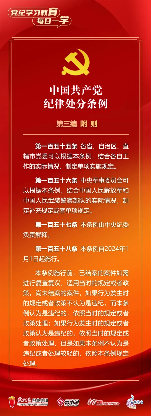 為深入學(xué)習(xí)貫徹落實(shí)習(xí)近平總書記關(guān)于黨紀(jì)學(xué)習(xí)教育的重要講話和重要指示精神,便于全省各級黨組織和廣大黨員、干部深入學(xué)習(xí)貫徹修訂后的《中國共產(chǎn)黨紀(jì)律處分條例》,云南網(wǎng)聯(lián)合“學(xué)習(xí)強(qiáng)國”云南學(xué)習(xí)平臺、云南發(fā)布共同策劃推出“黨紀(jì)學(xué)習(xí)教育•每日一學(xué)”專欄,營造全員參與、人人學(xué)紀(jì)的濃厚氛圍。今天,我們推出第74期,一起來學(xué)習(xí)。