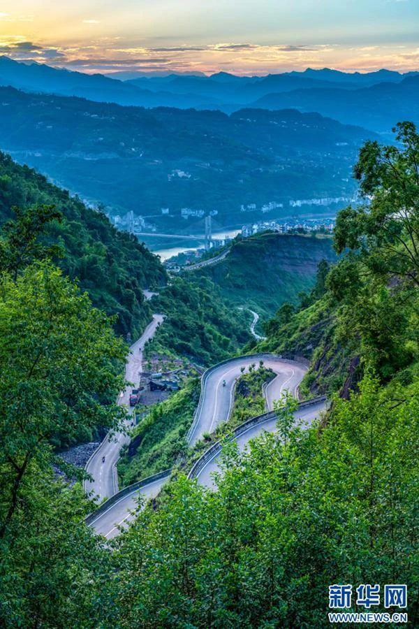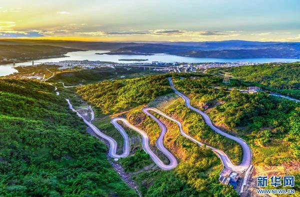 夕陽(yáng)映照下蜿蜒山間的鄉(xiāng)村公路(5月2日攝)。新華網(wǎng)發(fā)(曾三東 攝)